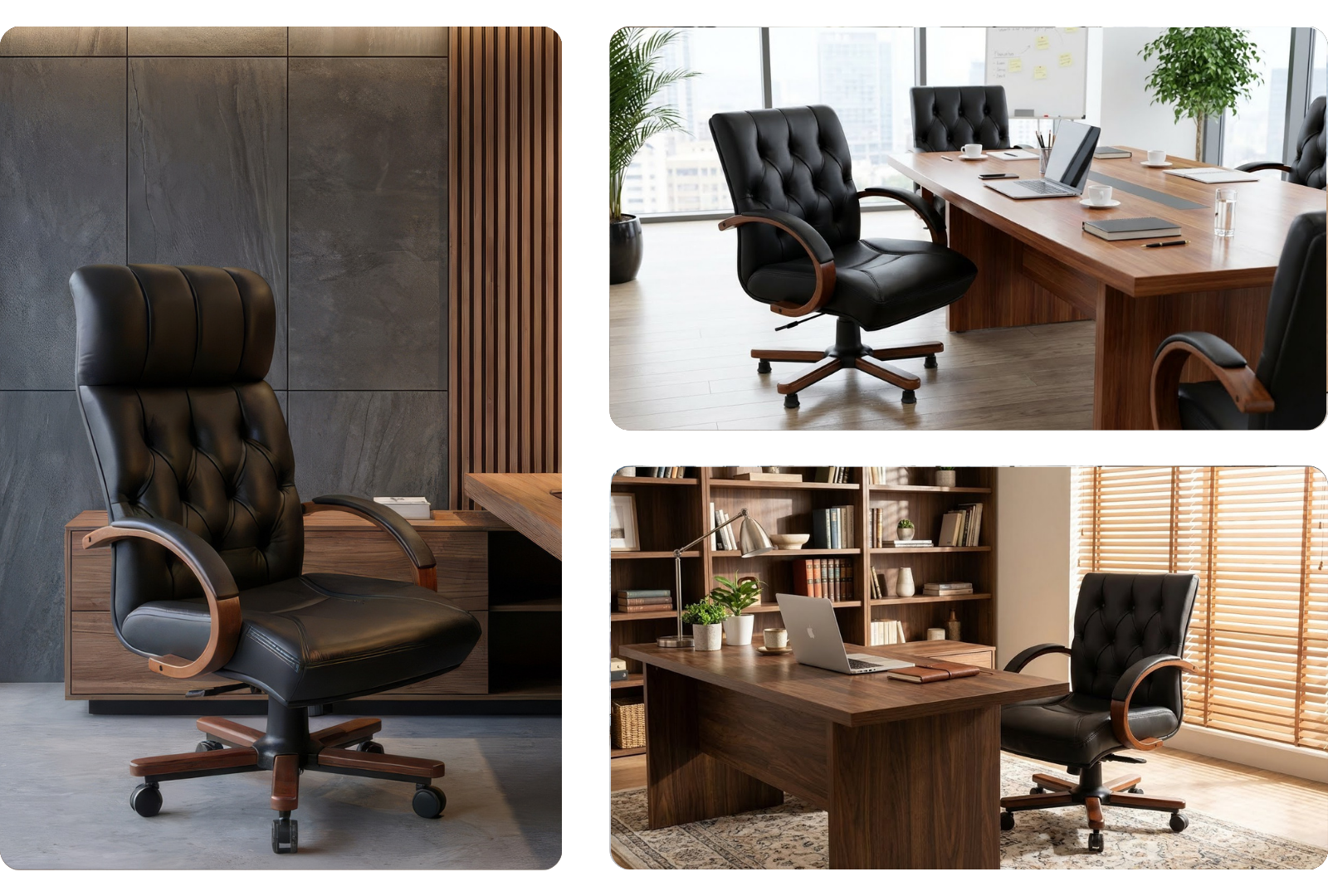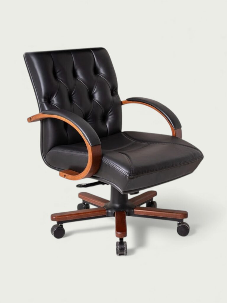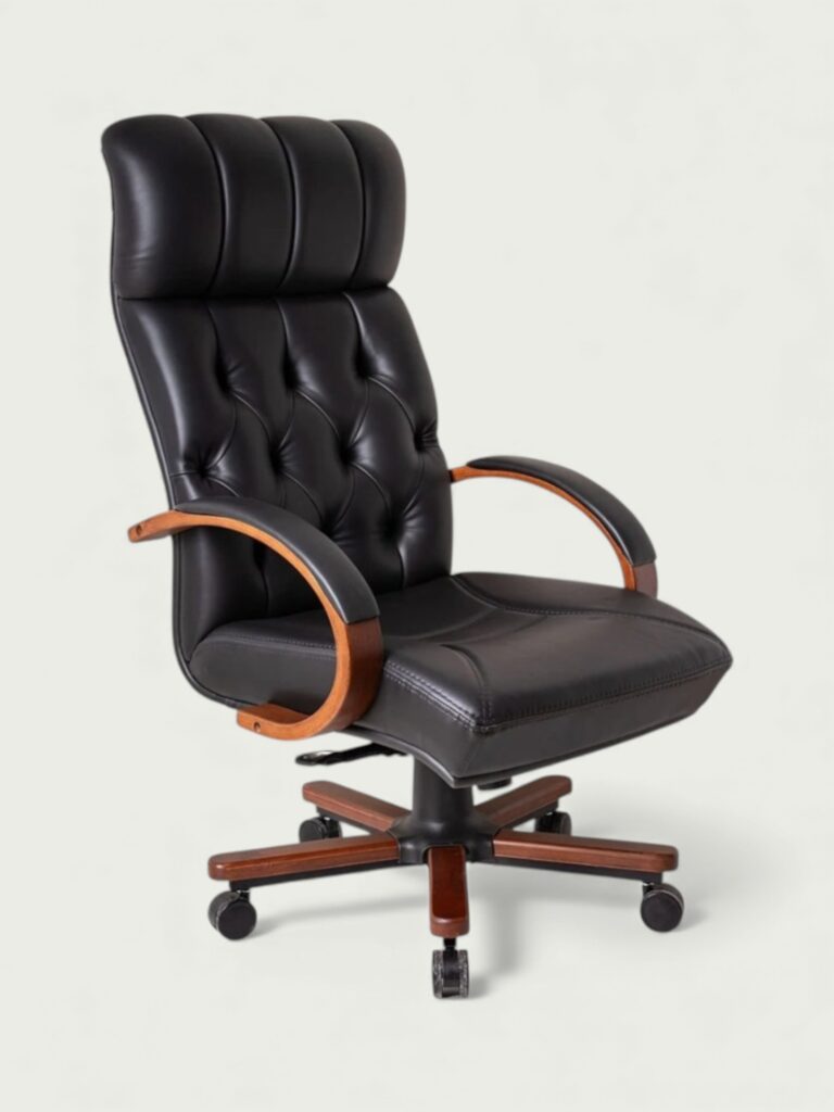 | Tasarım | Klasik yönetici çizgisini yansıtan yüksek sırt formu, kapitone detaylı döşemesi ve geniş oturum yapısı ile prestijli ve güçlü bir görünüm sunar. Ahşap kolçak ve ayak tasarımı modeli benzersiz hale getirir. |